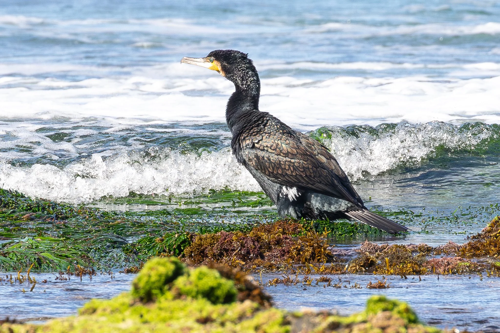 This Great Cormorant uses the Flat Rock as a base, it is usually seen in waves alongside the rocks.
