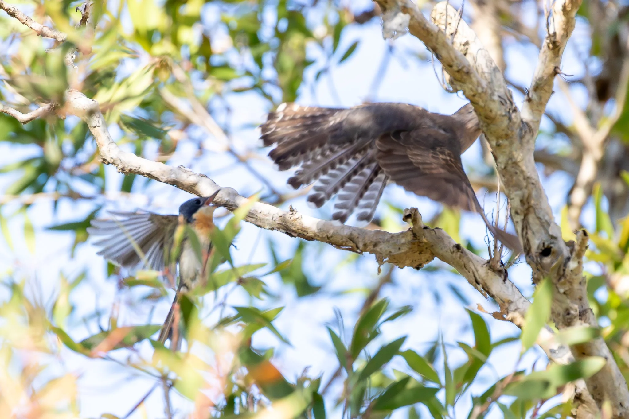 But they are not always welcome as this Leaden Flycatcher sends the intruder on its way.