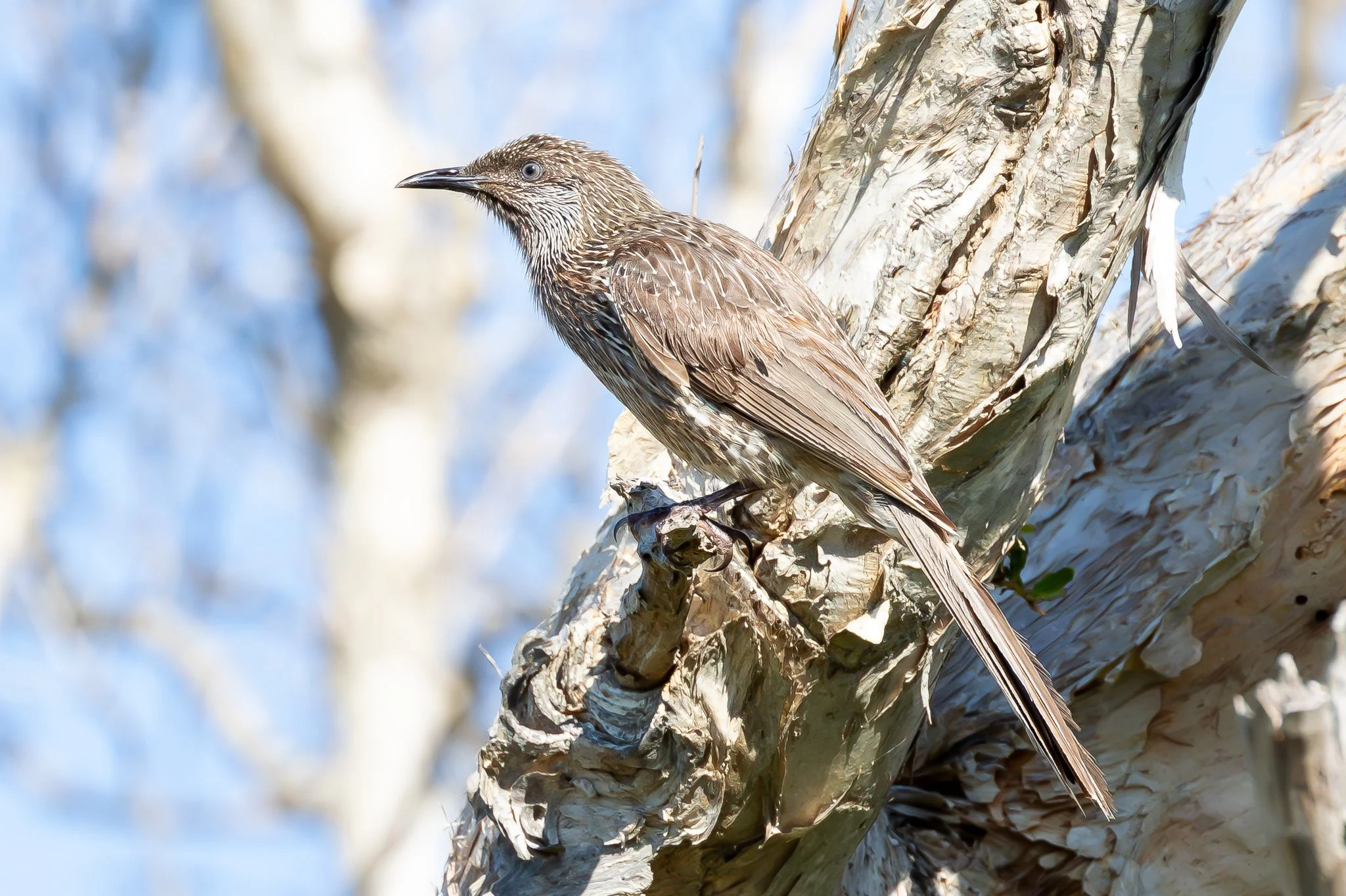 Inquisitive Lewin’s Honeyeater poses on a handy branch near the old sewage ponds.