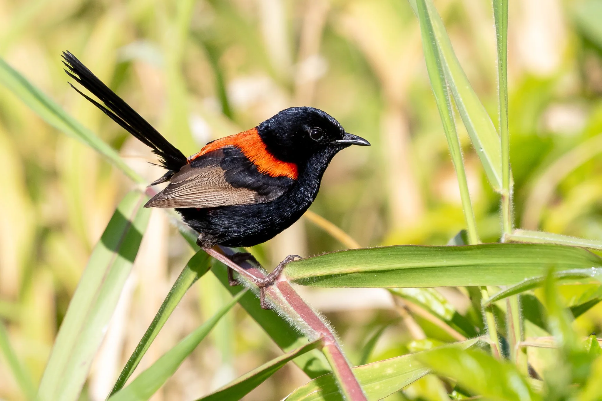 A Red-backed Fairy-wren photographed in the reeds near the sewerage ponds - in an exposed position with good lighting.